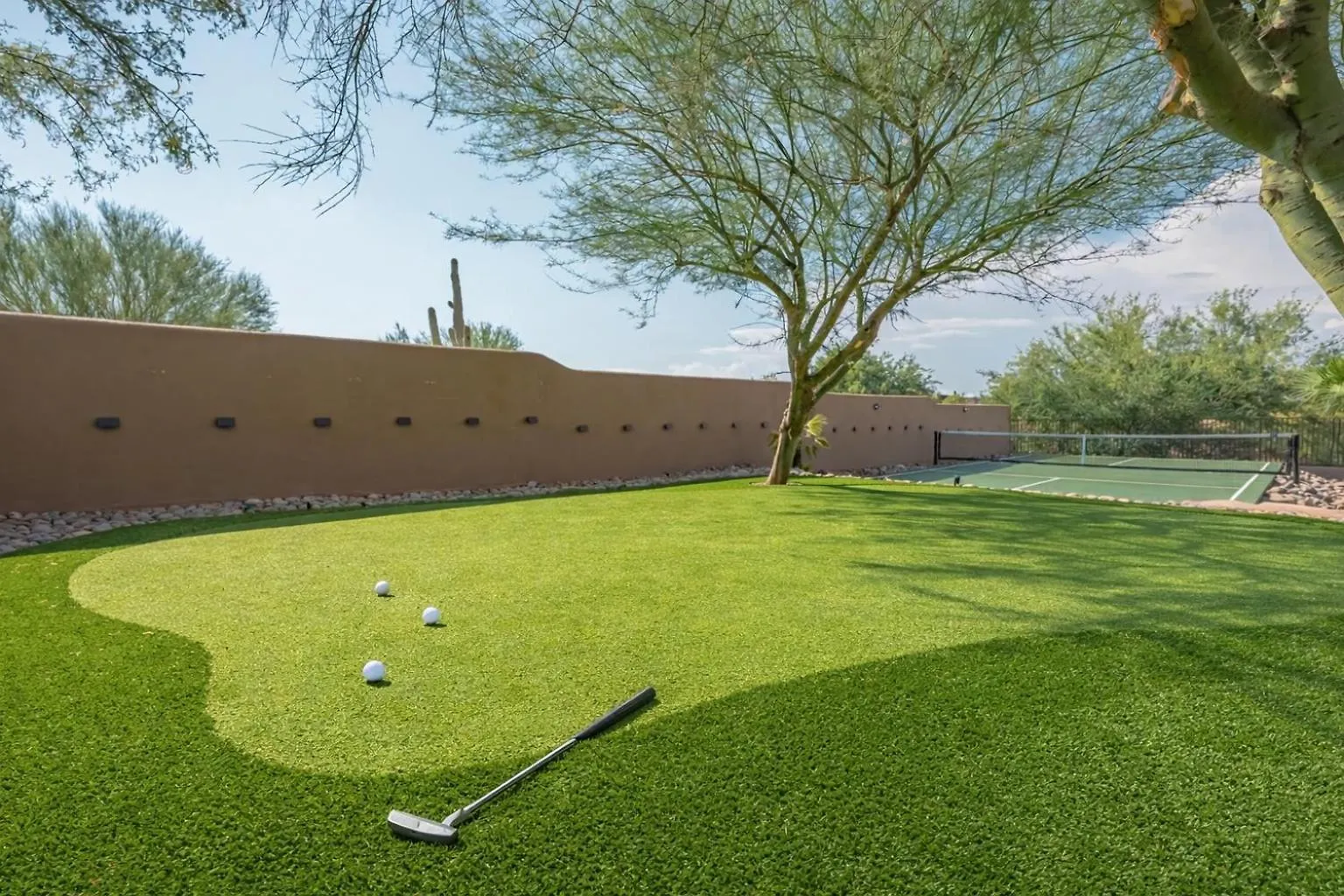 Durante su estancia en la villa Sleeps 25 • Heated Pool And Spa • Pickleball Court Scottsdale, los huéspedes pueden practicar billar o visitar el Inicio del Sendero Tom's Thumb, situado a unos 5 km. Esta villa está situada a unos 10 minutos en coche del Inicio del Sendero Granite Mountain y ofrece a sus huéspedes un jacuzzi y una bañera de hidromasaje.